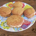 - In a bowl, mix the peanut butter with the cream cheese. When the cookies are cold spread the peanut butter mixture on a cookie and put another on top. Serve.