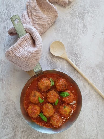 Haz que los niños disfruten comiendo unas sabrosas y nutritivas albóndigas de garbanzo y salsa de tomate!