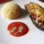 - Rellenar las berenjenas con la mezcla de las alubias. Cubrir con el queso rallado. Hornear hasta que el queso quede gratinado. Servir con arroz.