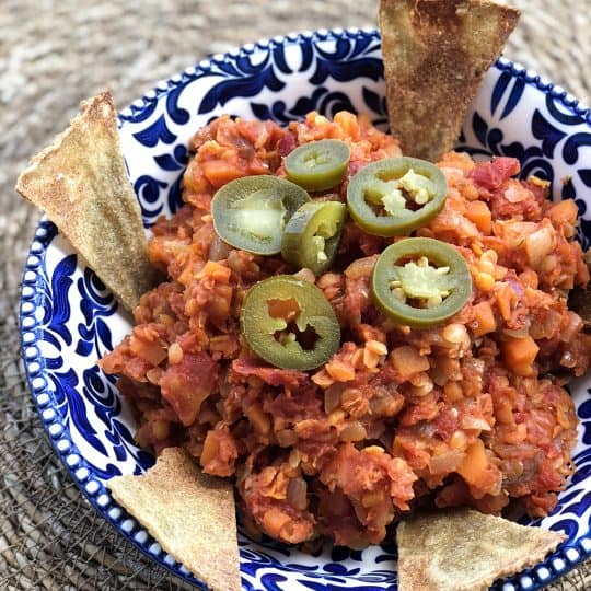 Una receta de boloñesa de lentejas rojas rápida de elaborar, sabrosa y saludable, perfecta para acompañar con nachos caseros y disfrutar en familia