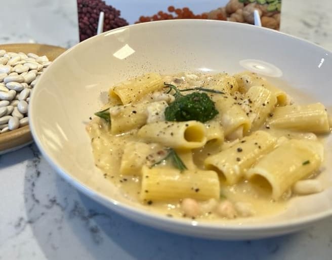 Pasta con salsa cremosa de alubias blancas