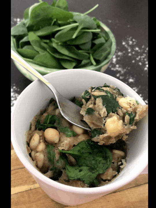 Mugcake salé aux pois chiches, épinards et pignons de pin