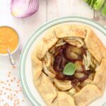 - Roll out the brisée pastry in a circular fashion, spread the paté you have previously prepared and fill it with the fennel and onions. Close the edges towards the centre, brush with oil and sprinkle with sesame seeds.