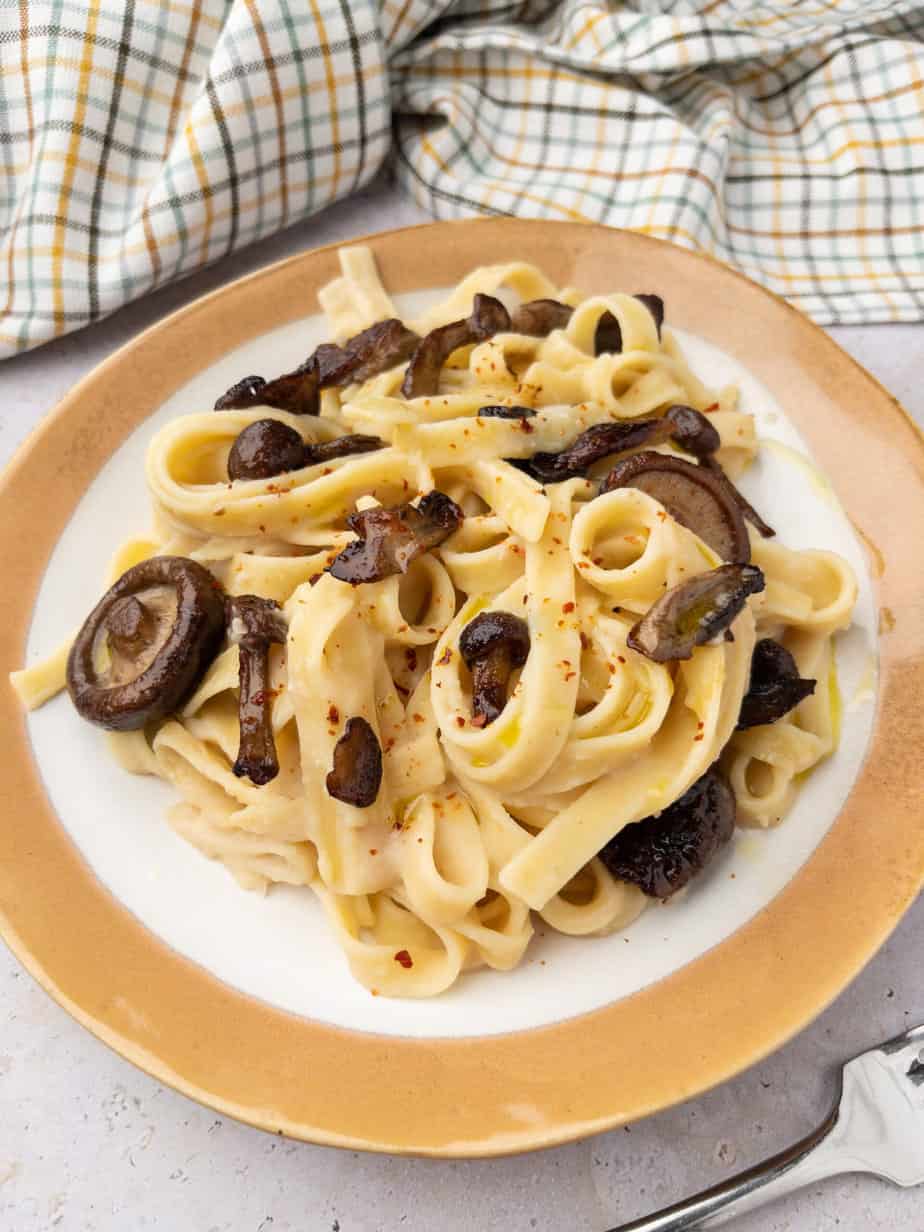 4. Num tacho, misture o molho com os cogumelos, leve ao lume até começar a ferver, junte a massa, cozinhe durante 3 minutos, mexendo sempre, e desfrute!