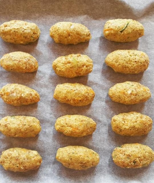 - Put them on a tray on parchment paper and bake at 180 degrees for about 25 minutes. You keep on watching and when you see the golden ones, they will be ready.