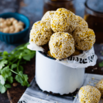 - Coat the meatballs in sesame seeds.